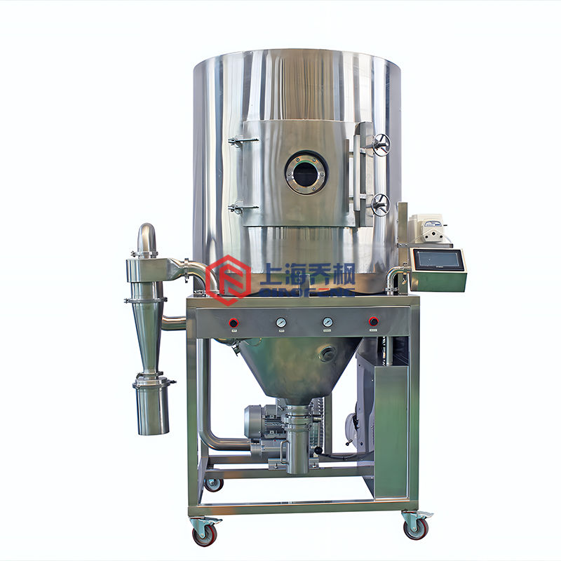sprayGranulator dryer is a set of granulating spray dryer developed by Shanghai Qiao Feng. The QFN-ZL series granulating spray dryer (Qiao Feng exclusive) is a special double air blowing granulator spray nozzle, which is a major innovation in China. It directly transforms uniform spherical droplets into particles through uniform heat.