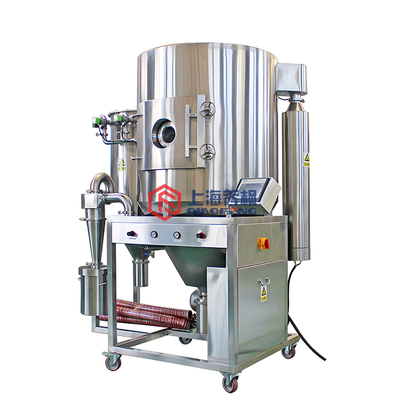 6) 生產過程簡化,智能操作觸摸屏程序控制方便,適宜實驗型,連續控制生產型請聯系我公司人員定制生產型噴霧干燥機。