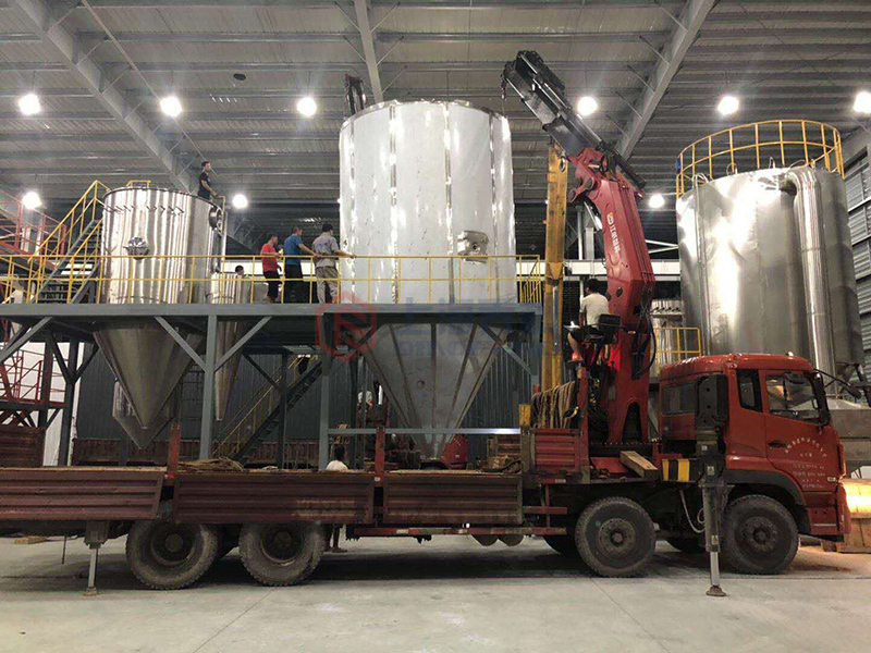 將熱風送入到強制分配器中,通過霧化塔的均風板出來。和熱風充分接觸并迅速干燥。